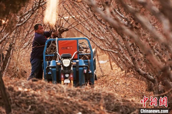 桃農正加緊修剪清理油桃樹上的枯枝。高新生 攝