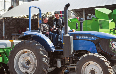 3月23日,臨汾市古縣舊縣鎮(zhèn)金紅農(nóng)機(jī)市場(chǎng)內(nèi),農(nóng)機(jī)手在銷售人員的指導(dǎo)下挑選拖拉機(jī)。閆銳鵬攝