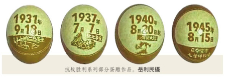該系列作品遴選了“九一八事變”“七七盧溝橋事變”“百團(tuán)大戰(zhàn)”等12例抗戰(zhàn)歷史事件作為蛋雕素材,經(jīng)過20余天的構(gòu)思與精雕細(xì)刻,岳利民讓他的“家國情懷”成為了國家記憶的一部分。
