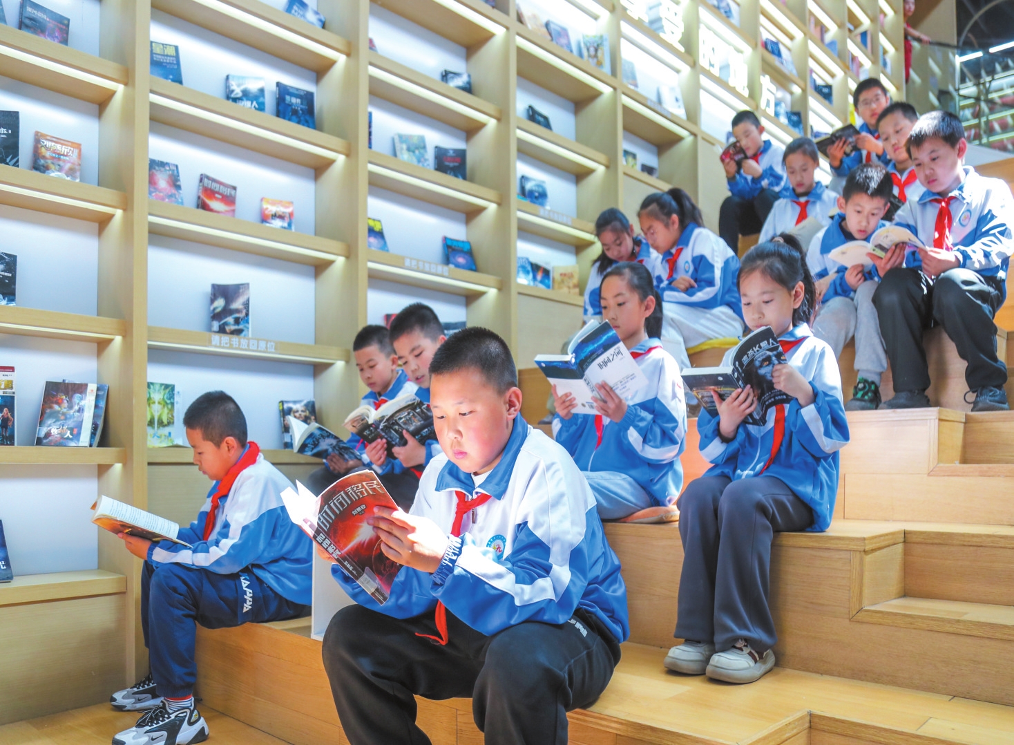 娘子關(guān)磚縫萌發(fā)新綠,礦山軌道延展為書徑。書香伴著春光,一直延伸到桃河岸邊。公園里,長長的書廊倚翠而設(shè),市民捧卷靜立,春花落滿書頁。這座曾以火花照亮北方的城市,正將工業(yè)文明的硬朗骨骼,熔鑄成全民閱讀的錚錚鐵骨。