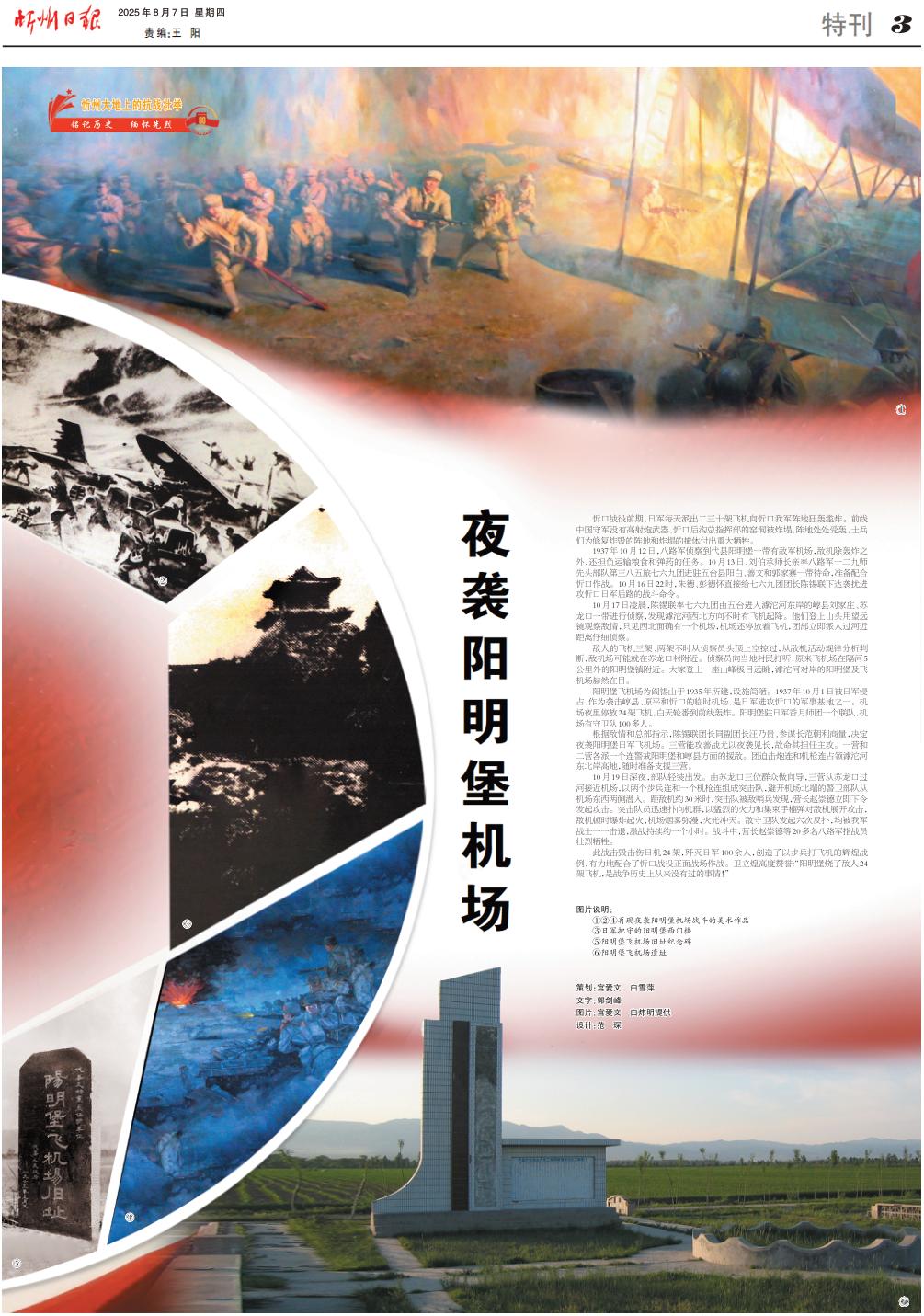 敵人的飛機三架、兩架不時從偵察員頭頂上空掠過,從敵機活動規(guī)律分析判斷,敵機場可能就在蘇龍口村附近。偵察員向當(dāng)?shù)卮迕翊蚵牐瓉盹w機場在隔河5公里外的陽明堡鎮(zhèn)附近。大家登上一座山峰極目遠(yuǎn)眺,滹沱河對岸的陽明堡及飛機場赫然在目。