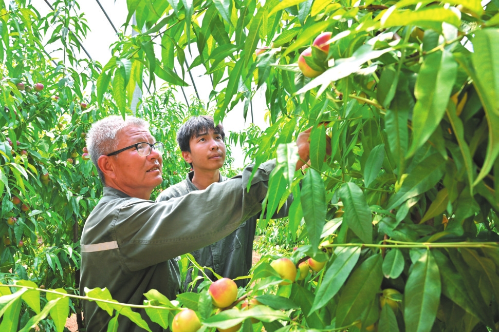 在三新模式示范園里,智慧農(nóng)業(yè)設(shè)備實(shí)時(shí)監(jiān)測(cè)土壤墑情,機(jī)械化修剪機(jī)正在作業(yè)?!耙郧翱刻斐燥?,現(xiàn)在靠科技增收?!奔h(yuǎn)杰擦著汗說(shuō)。這片曾經(jīng)的荒坡地,如今已成為集種植、加工、觀光于一體的現(xiàn)代農(nóng)業(yè)示范園,通過(guò)建立良好的“公司+基地+農(nóng)戶”運(yùn)行機(jī)制,帶動(dòng)周邊5村280戶年均增收3000元至5000元,村集體經(jīng)濟(jì)增收3萬(wàn)余元。